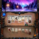 Геймплей же здесь выглядит следующим образом – вы передвигаетесь по глобальной карте и освобождаете города. Каждая раскладка пасьянса – это отдельное сражение за определенное поселение или достопримечательность. Сражение выглядит следующим образом – игрок раскладывает пасьянс, но в определенный момент один из столбиков начинает мигать. Это означает, что из этого столбца нужно переложить несколько карт в другое место. Не успели переложить – получите урон. После победы игрок получает опыт, повышая свой уровень, и золото, которое можно потратить на магию, броню и пр.